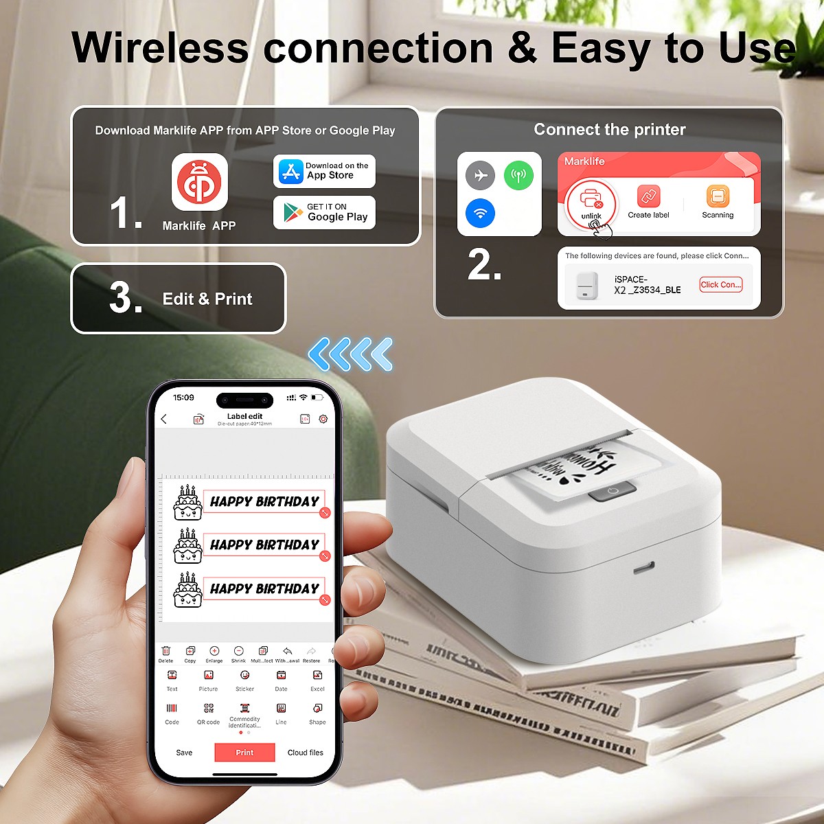 Marklife S2 photo receipt label printer 2 inch ink