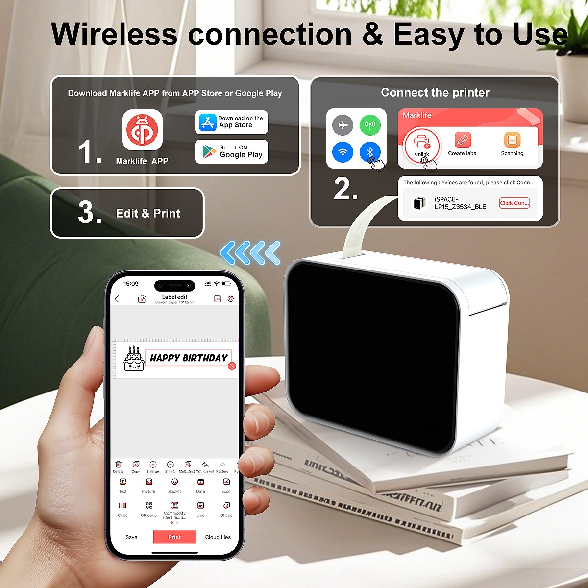 Marklife X2 Portable Thermal Printer Non-Ink RFID