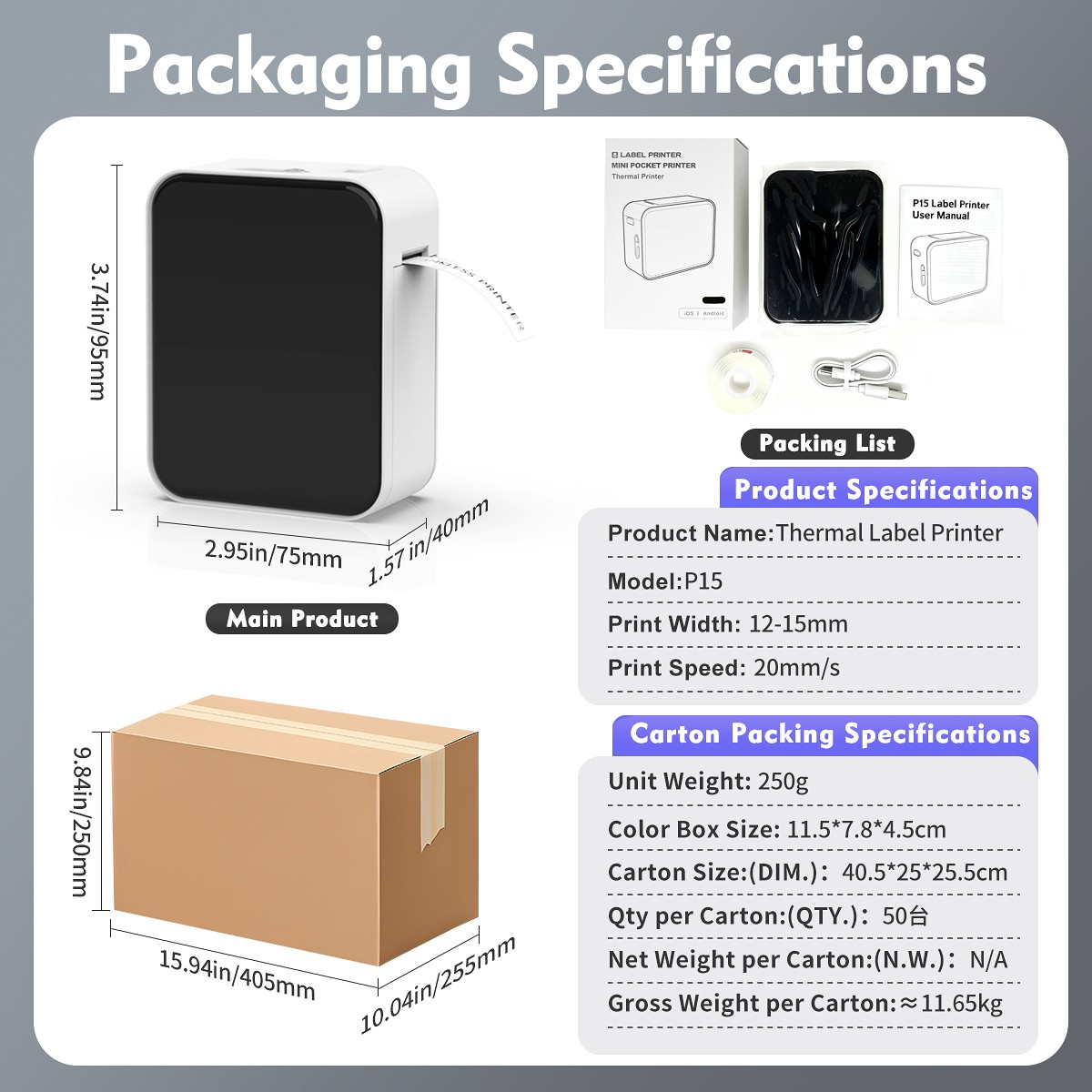 50mm Portable Barcode Printer Thermal Label Printe