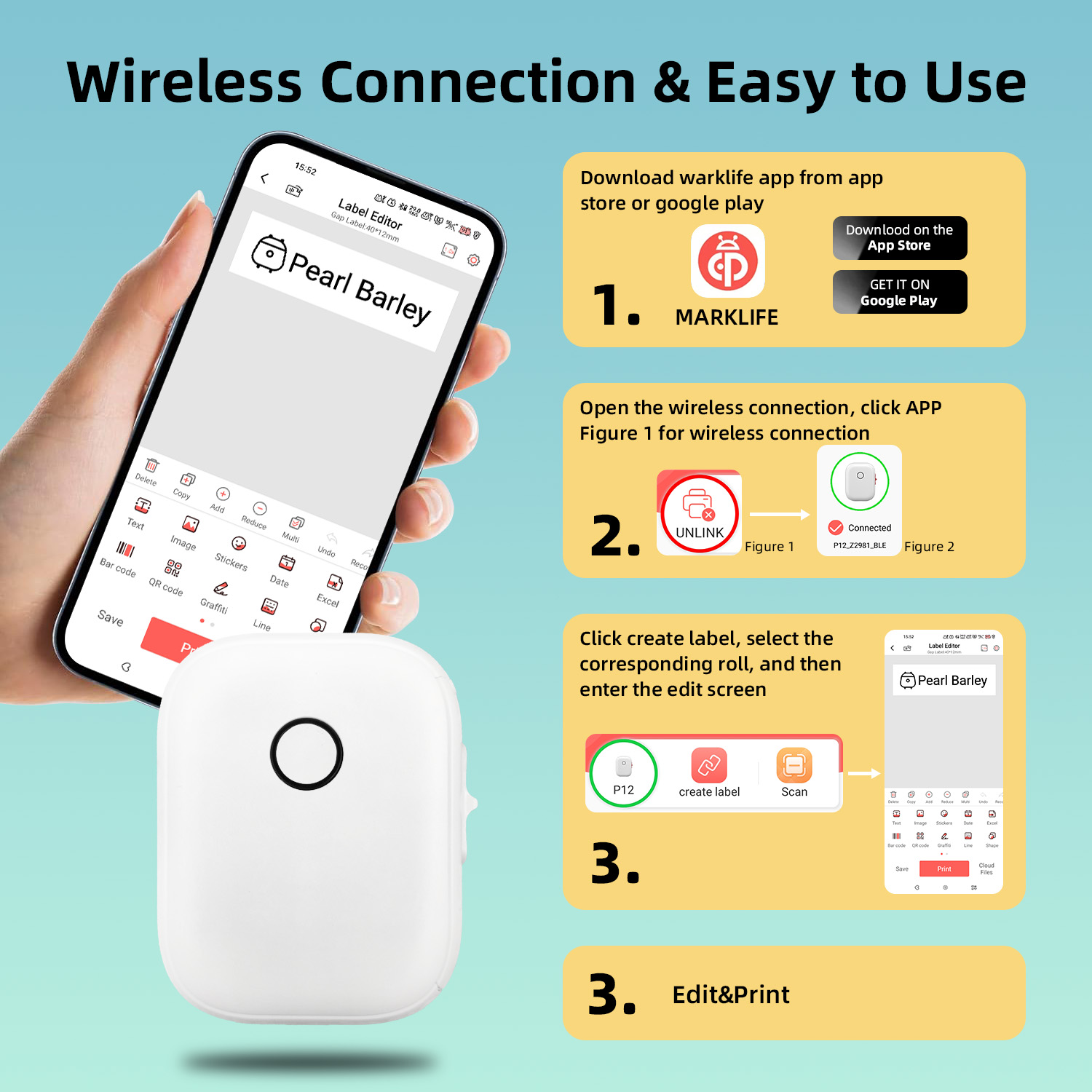 Marklife X4 203dpi Portable Thermal Label AI Print